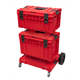 Transportplatform op wielen Qbrick ONE System ONE 2.0 met onderdeelnummer SKRQTPONE2ACZEPG003 is de rode Allterrain Ultra HD off-road versie. Uniek op de markt, is de transportmodule voor systeemboxen verbeterd met betere wielen in de lijn van de CARTa 2.0 en een vlakke plaat met platformfunctionaliteit uit de PRO lijn. Tegelijkertijd zijn de voordelen van een hybride van twee loopsystemen voor gereedschapskisten behouden.